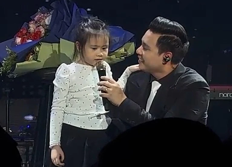 TPO - Thấy con gái bất ngờ ôm hoa lên sân khấu tặng bố, Đông Hùng nịnh con gái hát "Còn gì đẹp hơn" - ca khúc được khán giả yêu cầu trong phần cuối đêm nhạc riêng của Đông Hùng tối 24/10 tại Hà Nội. Ban đầu còn chút e thẹn, song bé Khiết Lam sau đó mạnh dạn cùng bố hát ca khúc "Còn gì đẹp hơn" - ca khúc của Hùng Nguyễn gây sốt trong thời gian "Mưa đỏ" ra rạp. Đông Hùng tiết lộ con gái mong muốn sau này nối nghiệp bố.
